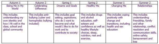 Jigsaw covers all areas of PSHE for the primary phase including statutory Relationships and Health Education. The table below give the learning themes of each of the six Puzzles (units) and these are taught across the school; the learning deepens and broadens every year.
